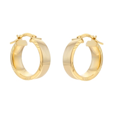 Goldsmiths 9ct Yellow Gold Diagonal Cut Edge Hoop Earrings