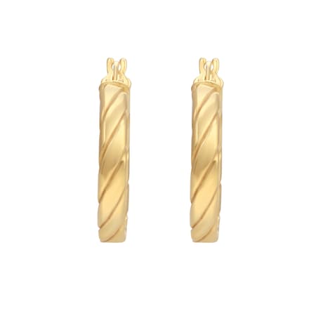 A staple accessory for every occasion, these 18mm textured hoop earrings compliment every outfit with effortless, versatile charm. Each 9ct yellow gold hoop is beautifully crafted, reflecting the light for a dazzling shine. Whether worn solo for a minimalist statement or paired with other pieces for a layered look, these earrings offer a touch of everyday luxury.
