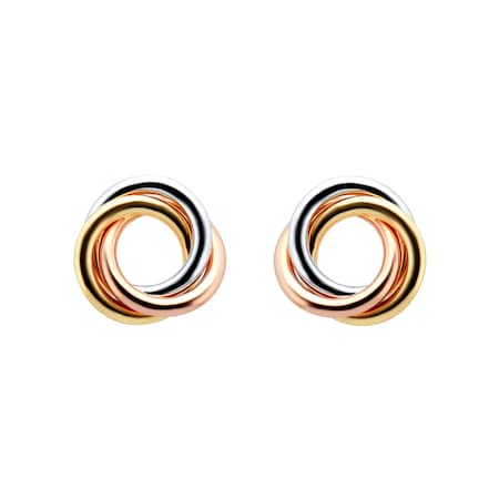 Mesmerisingly entwined, these beautiful stud earrings are crafted from 18ct rose, yellow and white gold, adding depth and dimension for a versatile and timeless finish.