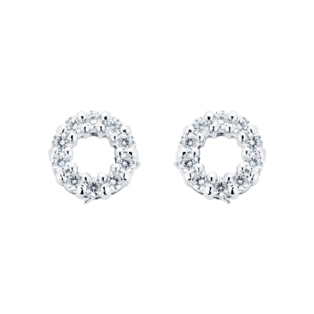 Crafted from sterling silver, these stud earrings feature a circular motif adorned by cubic zirconia gemstones.