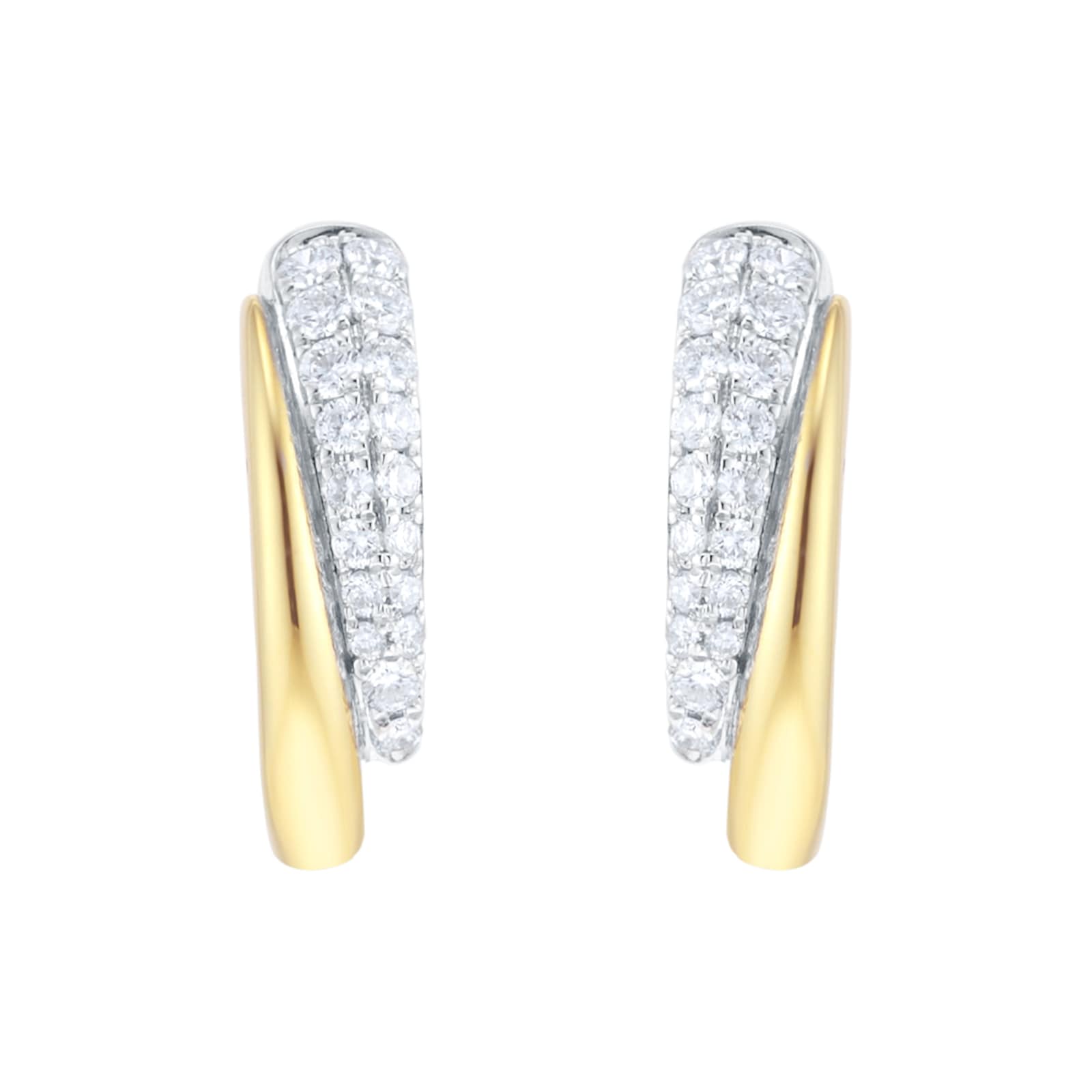 With 0.40ct of diamonds, these earrings showcase a unique, diamond-set, asymmetric design crafted in a luxury two-tone of yellow and white gold. Their elegant style is perfect for elevating any look.