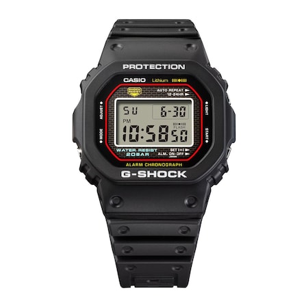 DW-5000 The OG is back! Introducing the DW-5000R - a masterful re - creation of the first - ever G-SHOCK. Celebrating over 40 years of groundbreaking design and technological advancements, this new release pays homage to the iconic original. The top features which set it apart from the rest include the iconic screwdown caseback and original brick pattern dial with a stainless steel module under the rubber bezel. Iconic colour accents — red for determination, blue for water resistance, and yellow for shock resistance — remain true to the classic model, as does the signature brick pattern symbolising toughness. Launched on April 12, 1983, the first G-SHOCK revolutionised the watch industry with its unparalleled shock resistance, surpassing ISO standards and thriving in extreme conditions — from intense athletic use to the vibrations of power tools like jackhammers and chainsaws. Beyond its advanced durability, the original G-SHOCK gained acclaim for its bold, distinctive design. This legacy was solidified in 2023 when the Japan Patent Office granted Casio a 3D trademark for the shape of the iconic watch — a first for wristwatches in Japan. Enhanced features like a high-brightness LED backlight and an updated 42.3 mm case size blend modern functionality with timeless aesthetics. The new DW-5000R pays meticulous tribute to its predecessor while integrating cutting-edge G-SHOCK technologies. Its stainless steel case and bio-based resin band replicate the original's design, right down to the dimples and details. Manufactured by master engineers at Yamagata Casio, the birthplace of G-SHOCK, the DW-5000R embodies respect for the craftsmanship that created the original while advancing the brand’s legacy of constant innovation. With features such as 20-bar water resistance, a shock-resistant structure, and essential functions like a stopwatch, countdown timer, and alarms, this model reinforces G-SHOCK's trailblazing vision of durability, design, and performance.