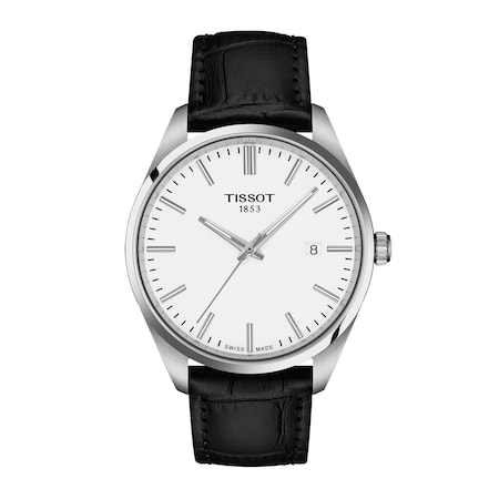 The best-selling Tissot PR 100 remains true to its name: precise (P), robust (R), and water-resistant to a pressure of 10 bar (100 m). Made from stainless steel, this new design offers a large dial thanks to the narrow bezel, for an elegant and minimalist look. The SuperLuminova®-coated hands enable precise reading even in the dark. This Tissot PR 100 Quartz model features a 40mm stainless steel case, a bright white dial and a classic black leather strap for a touch of elegance that will make the difference.