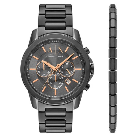 Armani Exchange Banks Chronograph Gunmetal Stainless Steel Watch and Bracelet Gift Set MPN: AX7170SET