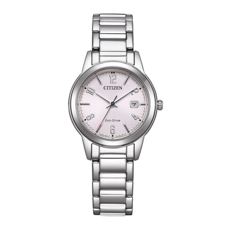 The modern ladies' watch FE1241-71Z is designed with a stainless steel case and bracelet, crystal glass and a pastel rose dial. Equipped with the Caliber J710 and Eco-Drive power system (Ring Solar), it also displays the date and is water-resistant up to 3 bar.