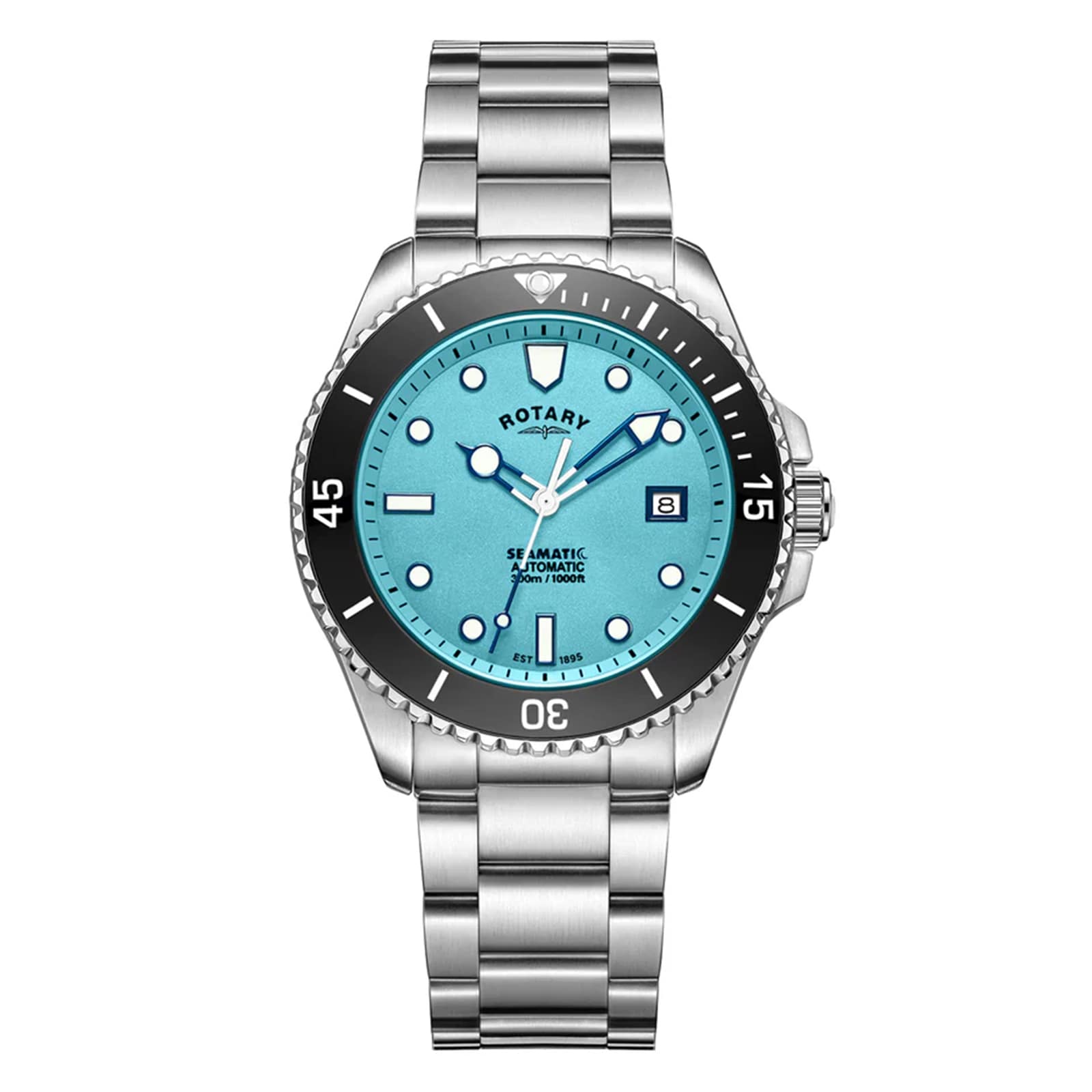 The Rotary Seamatic 300, the ultimate dive watch for modern adventurers. Combining rugged durability with sleek design, the Rotary Seamatic is your perfect companion for underwater exploration and everyday wear. Powered by an automatic Miyota 8215 movement with a 40 hour power reserve.