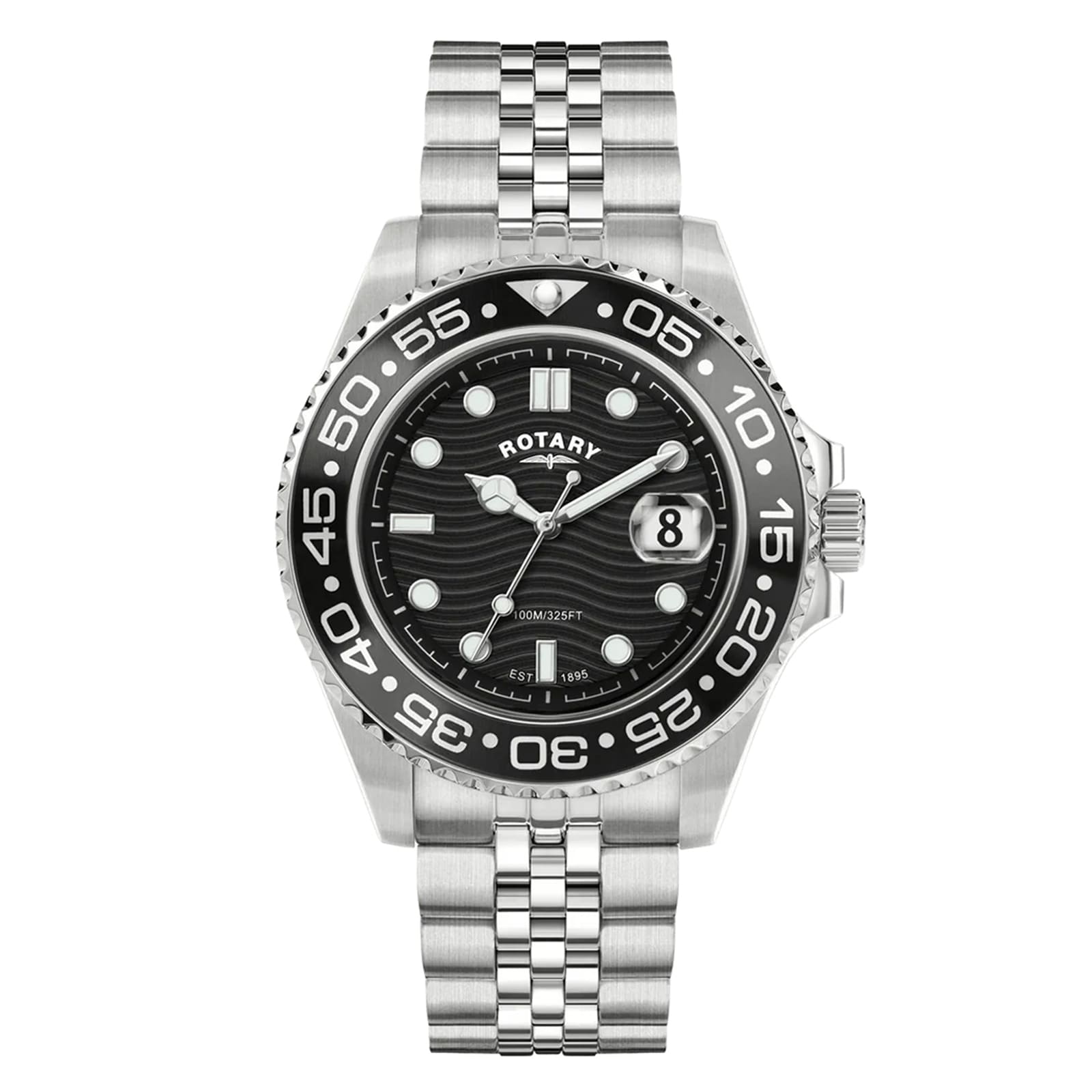 The Rotary Apex100 Diver blends classic sports watch design with modern, robust watchmaking. From its bold unidirectional bezel and date magnifier to the subtle wave-textured black dial, it showcases hallmark elements of a true sports watch.
