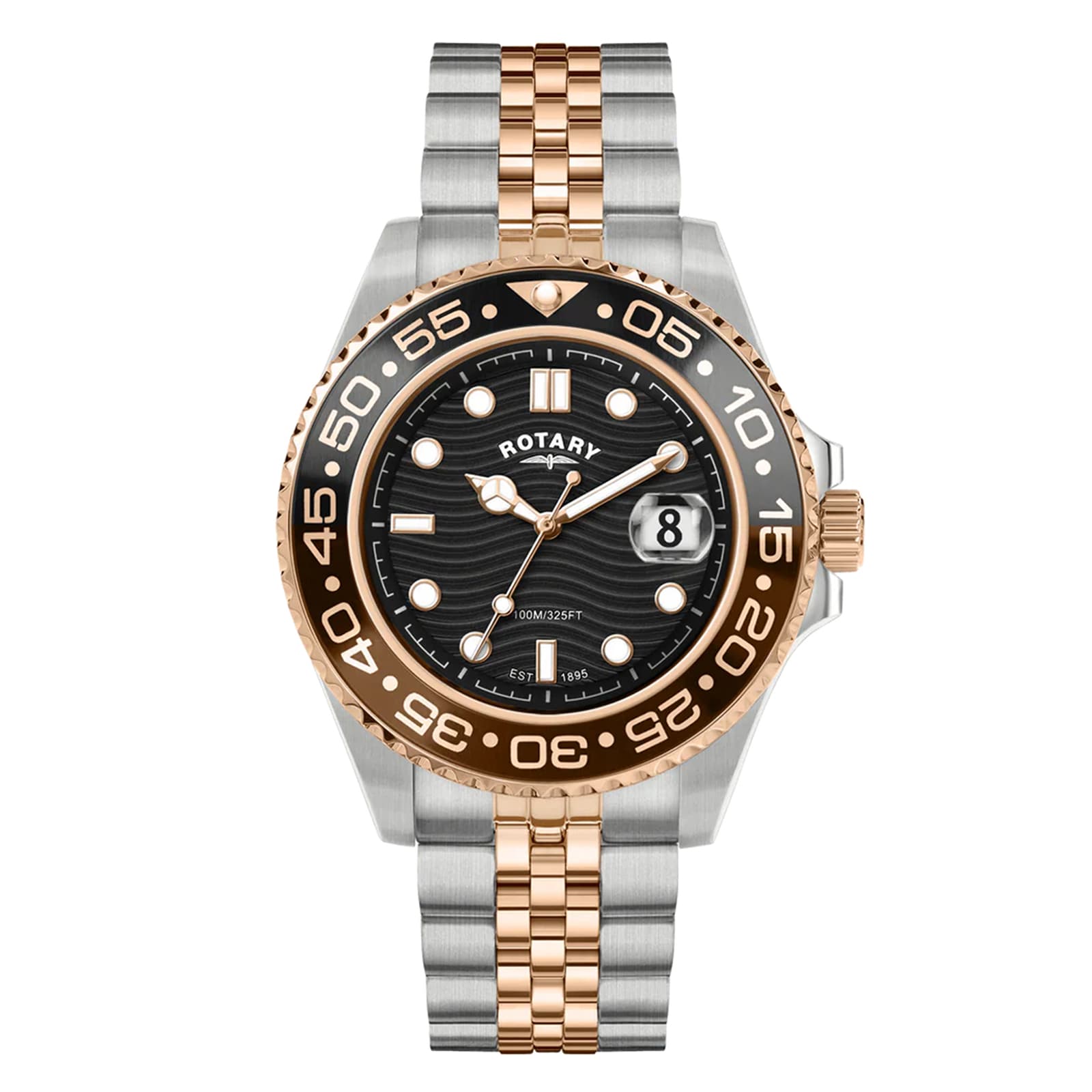 The Rotary Apex100 Diver blends classic sports watch design with modern, robust watchmaking. From its bold unidirectional bezel and date magnifier to the subtle wave-textured black dial, it showcases hallmark elements of a true sports watch.