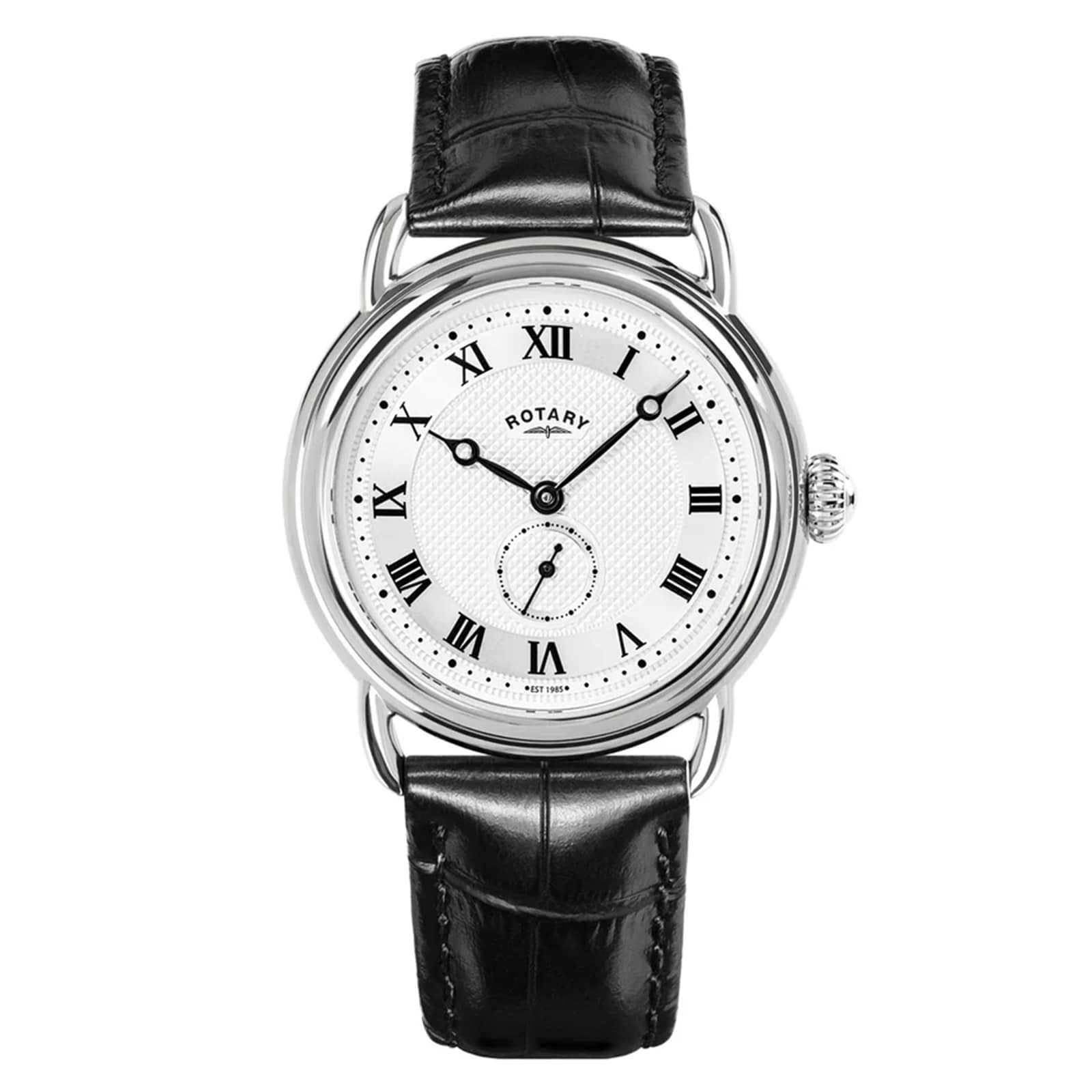 Completing the design is a black genuine leather strap and classic Rotary buckle and sapphire glass for enhanced durability.