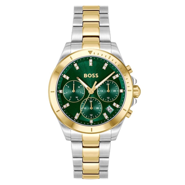 BOSS Alley Sport Lux Two Tone Crystal Green Dial Ladies Watch