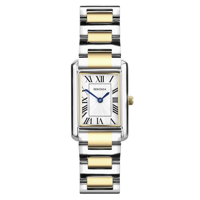 Say hello to the Colette Collection – where signature style meets timeless elegance. With its sleek rectangular case and guilloche-textured dial, complete with classic Roman numerals and eye-catching blue hands, this watch offers the luxury look for less. Choose from silver, gold & two-tone finishes and elevate your everyday look for a touch of luxury.