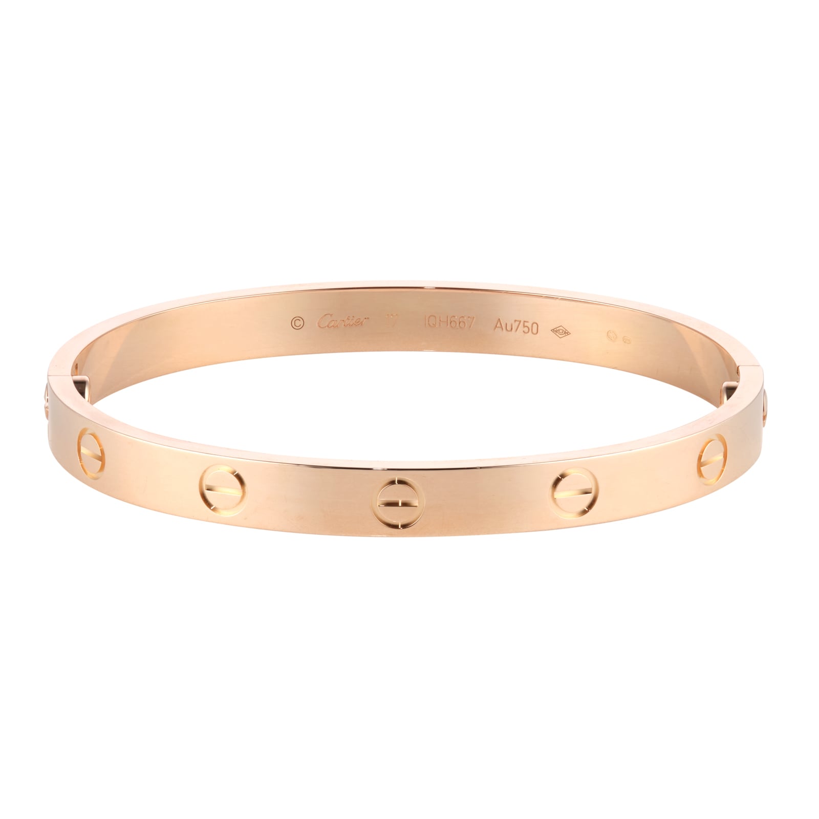 This Pre-Owned Cartier Love Bracelet in 18ct Rose Gold is from the Love collection. The bracelet includes the iconic screw motif displayed around the outer edge and features the screw and hinge fitting.