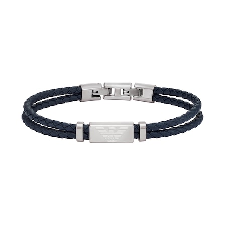Emporio Armani Mens Essentials Stainless Steel & Blue Leather Logo Bracelet MPN: EGS2995040