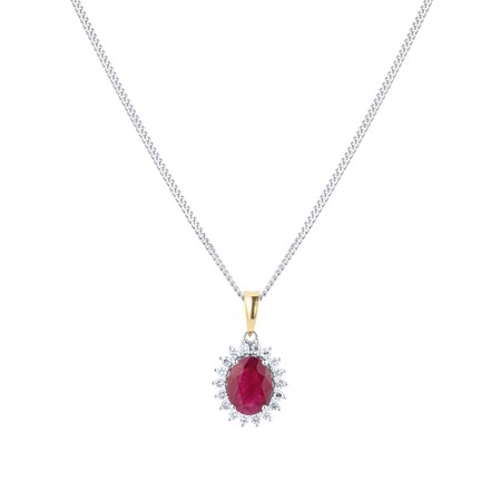 By Request 18ct White & Yellow Gold Ruby and Diamond Cluster Pendant MPN: 46090421