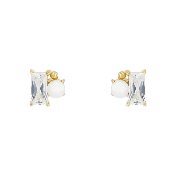 Amor Yellow Gold Coloured Sterling Silver Pearl & Cubic Zirconia Stud Earrings MPN: 2100121