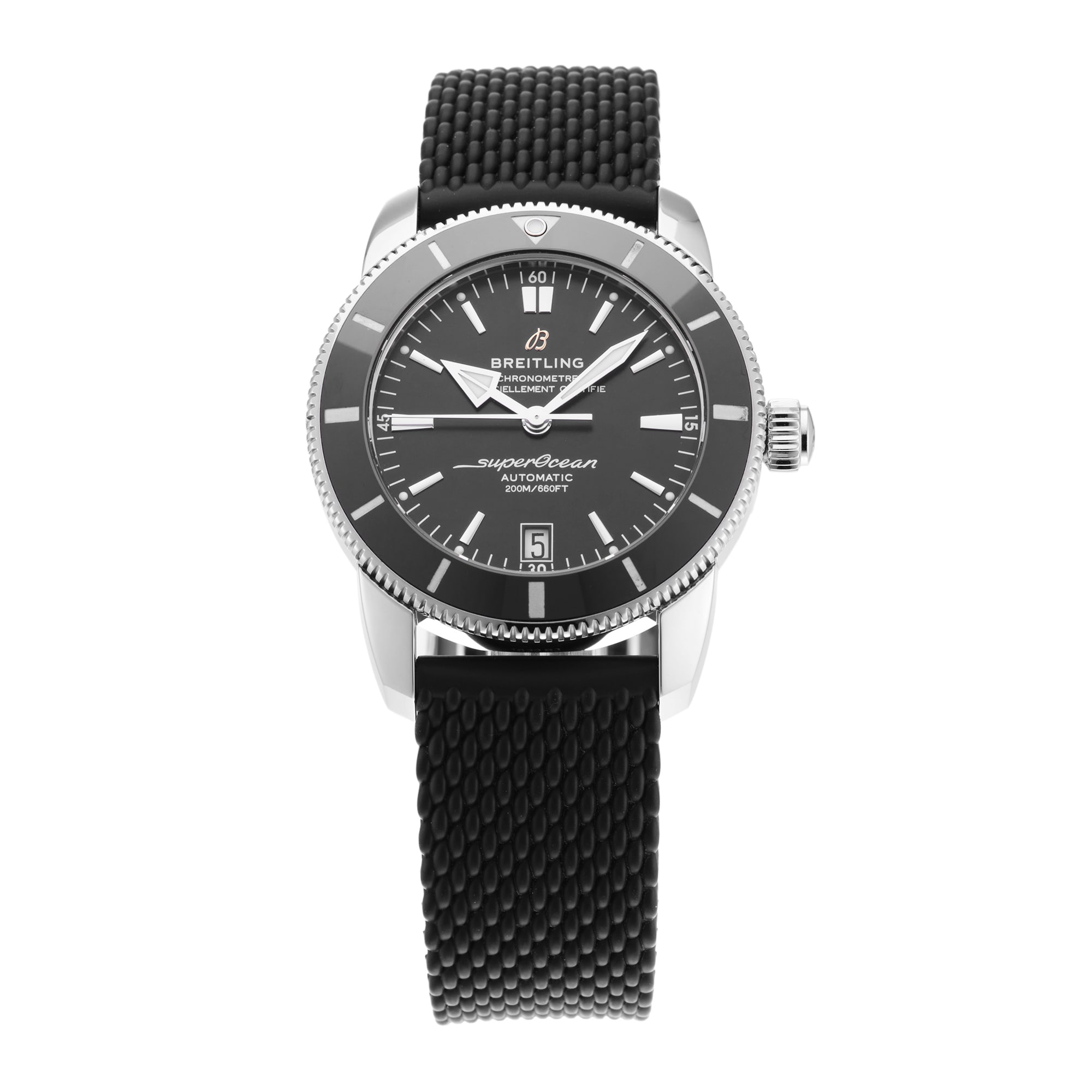 This Pre-Owned Breitling Superocean Heritage B20 Automatic 42MM Stainless Steel AB2010121B1S1 features a 42mm Stainless Steel case, showcasing a Black dial and sapphire crystal glass. Powered by an Automatic movement, this impressive watch also showcases a Rubber strap finished with a Deployment Clasp for increased security. This timepiece is also water resistant to 200 Metres.
